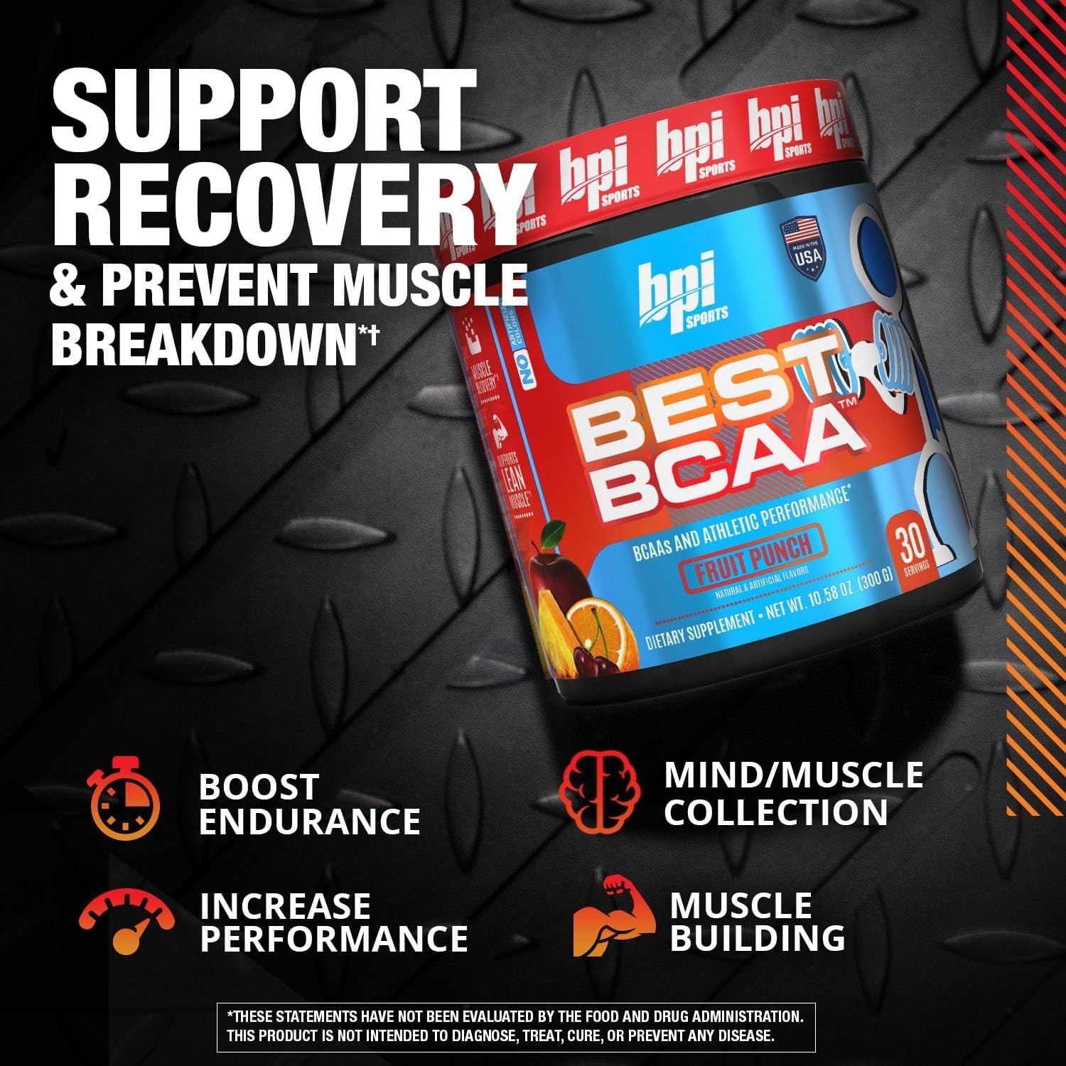 Best BCAA de BPI Sports es un suplmento hecho a base de péptidos de aminoácidos  de cadena ramificada cuya fórmula incluye Omega como ácido graso esencial y matriz de CLA para incentivar la oxidación de grasas durante el entrenamiento. Suplemento ideal para la recuperación muscular e inducción de síntesis proteica en el cuerpo.