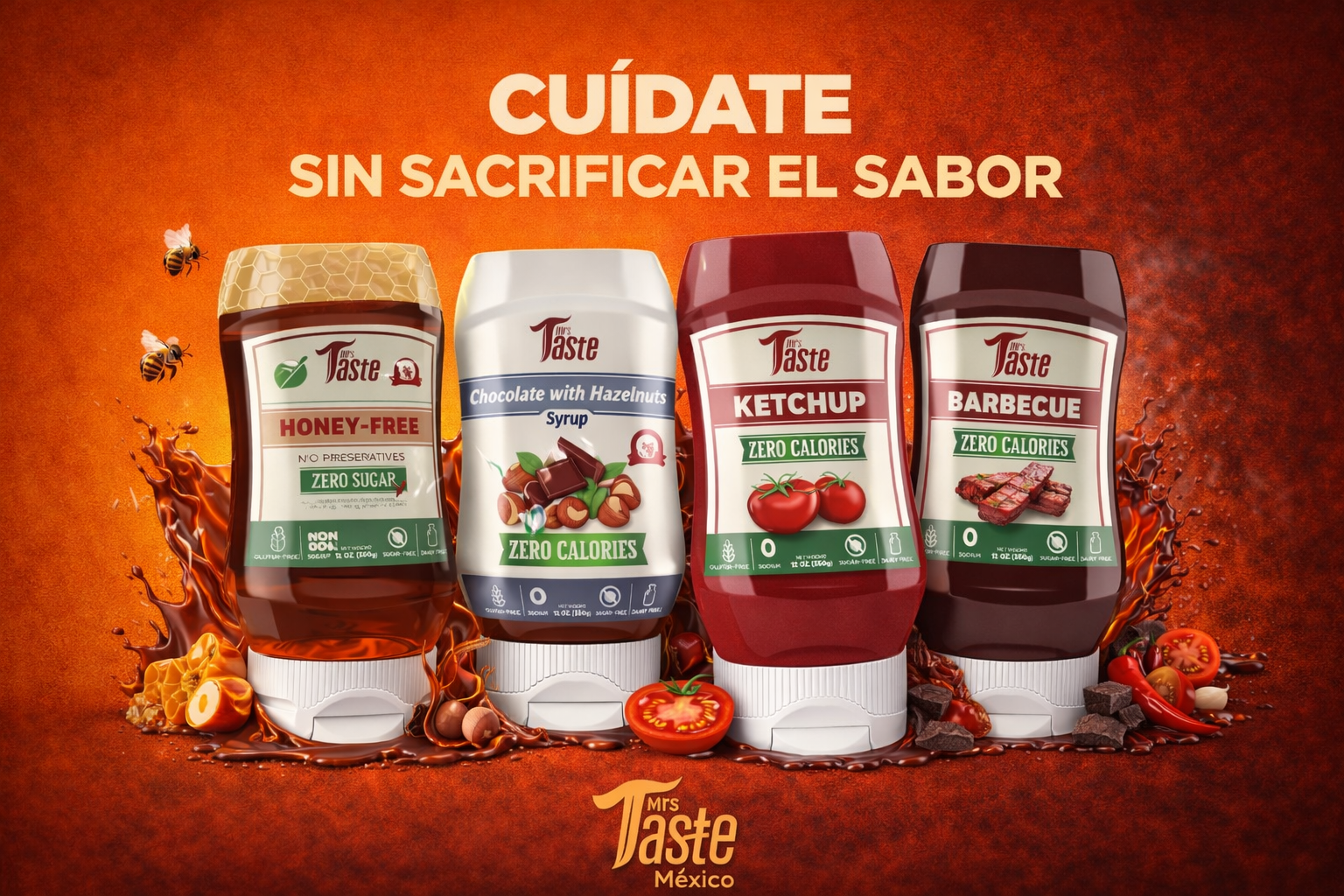 En Mrs. Taste nos enfocamos en llevarte sabores intensos con ingredientes saludables. Nuestra línea de salsas y aderezos deliciosos no contiene azúcar, sodio ni gluten, y tiene cero calorías. Son la opción perfecta para realzar tus platillos favoritos sin comprometer tu salud.
