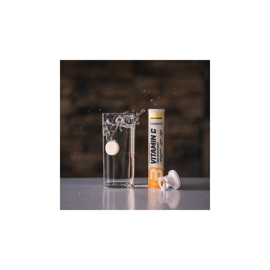 Dale un impulso diario a tu organismo con Vitamina C Efervescente BioTech USA (20 tabletas). Una forma práctica, rápida y deliciosa de consumir 1 000 mg de vitamina C por día, aprovechando su efecto efervescente para transformarlo en una bebida que cuida tu salud, rendimiento y recuperación.