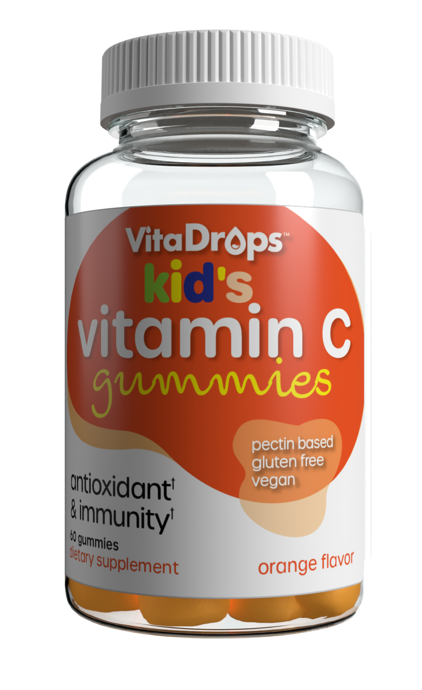 Gomitas de vitamina C VitaDrops™ para niños: un suplemento fácil de tomar con un delicioso sabor natural a naranja.