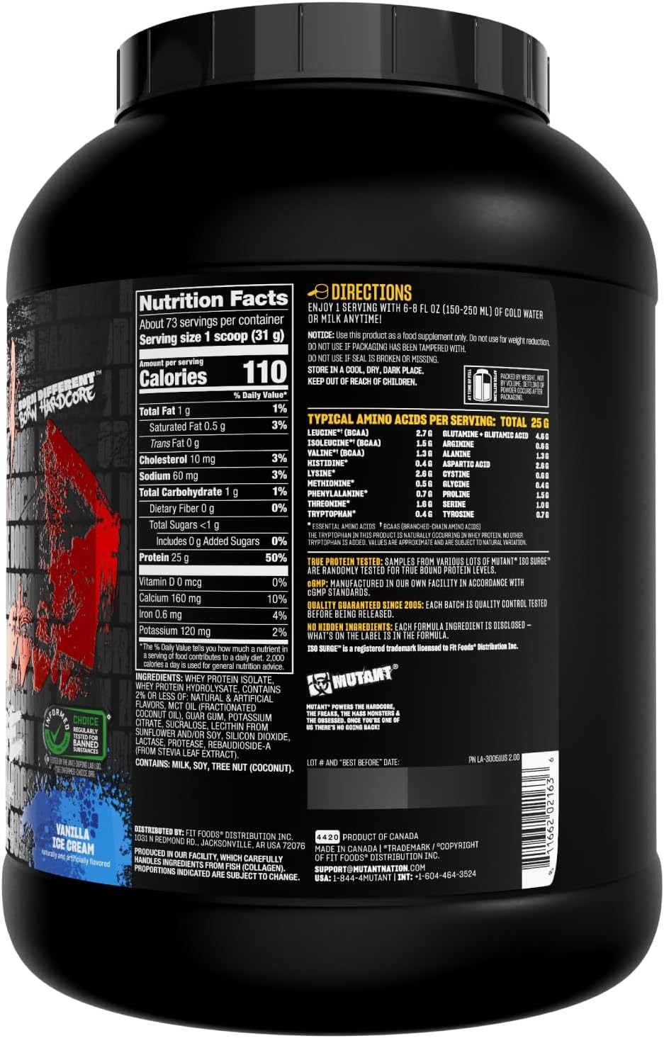 Los aislados de proteína de suero, tales como MUTANT ISO SURGE, pasan por un proceso llamado "filtrado". Esto da como resultado un porcentaje muy alto de pureza de proteínas al eliminar la mayoría de los carbohidratos, grasas y lactosa que se encuentran en los concentrados de proteína de suero. MUTANT ISO SURGE está hecho con 100% de proteína de suero. Las proteínas aisladas contienen prácticamente cero lactosa debido al proceso de filtrado que atraviesa durante la producción. Los aislados de proteína de suero también tienden a tener un sabor ligeramente mejor que los concentrados, pero su consistencia cuando se mezclan con agua o leche es un poco más delgada porque contienen menos carbohidratos y grasas. Ideal para definir, si deseas incrementar masa muscular magra y si tienes un tipo de cuerpo endomorfo.